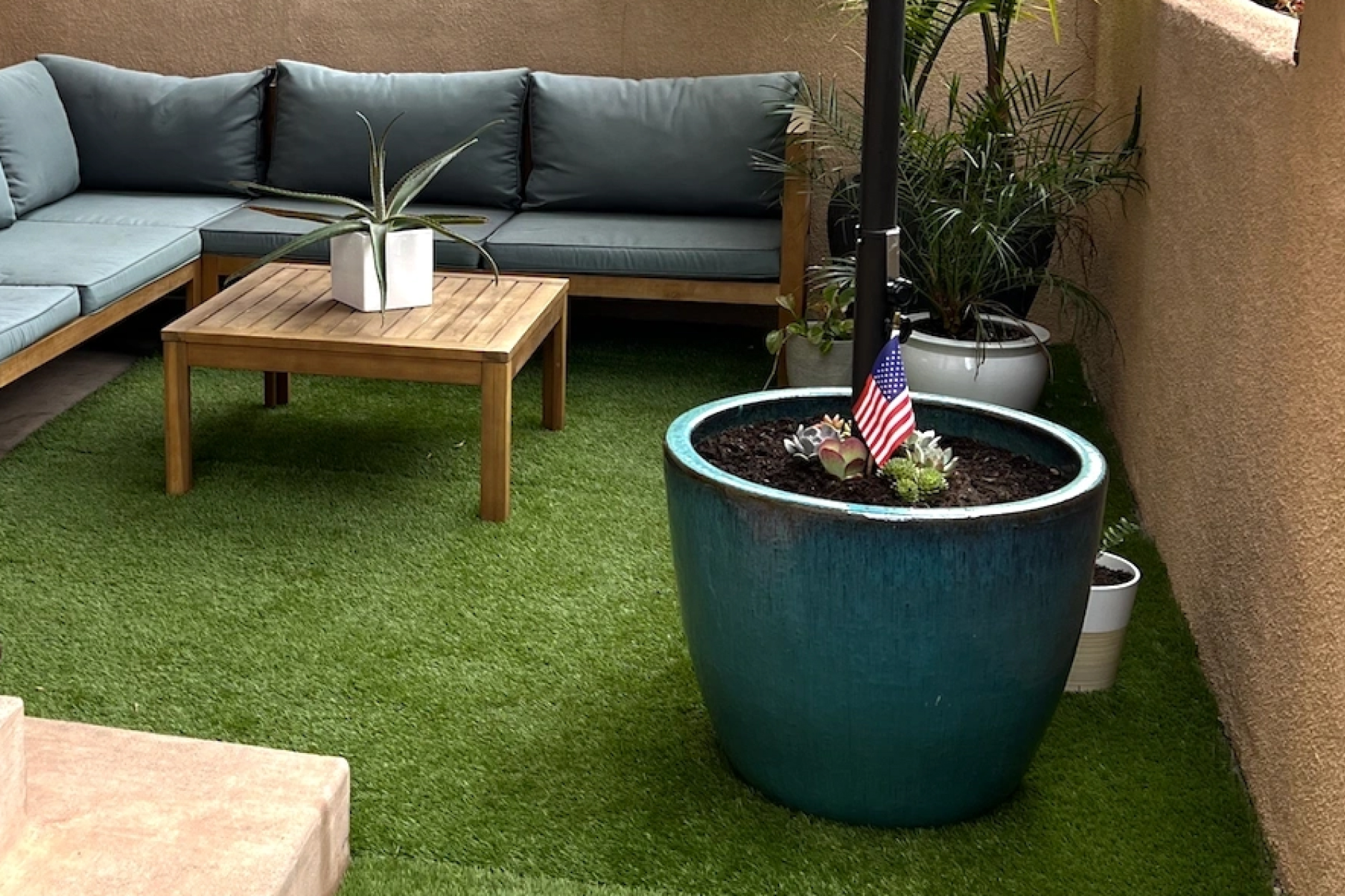 A Cantilever umbrella is a great choice for limited space, but the base was massive and limited where we could put things. So I decided to get creative, build my own, and share it with you.