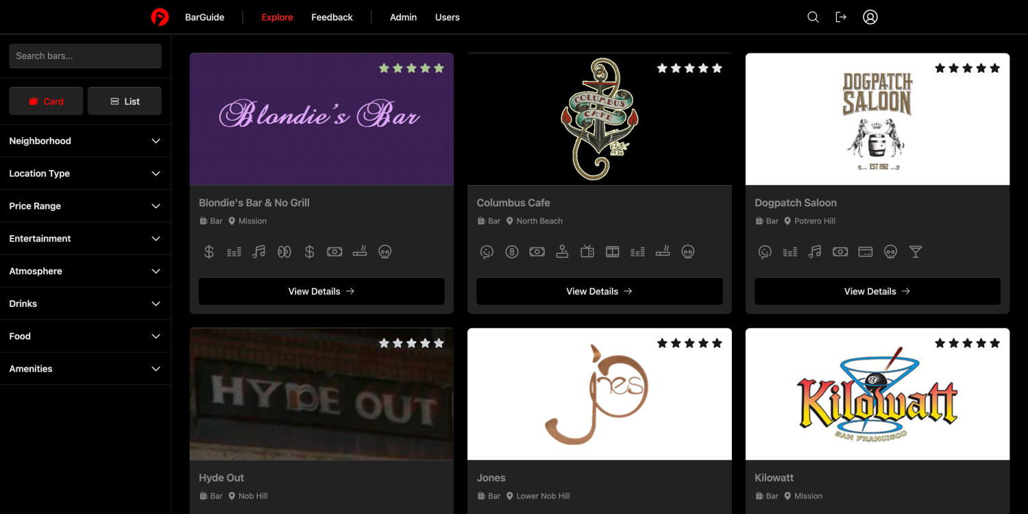 BarGuide.io solves this problem by providing a comprehensive search platform that focuses on the nuanced details that matter. Built with modern web technologies, the platform enables users to filter through hundreds of locations using an incredibly robust feature set, allowing them to find the perfect spot based on their specific preferences and needs.